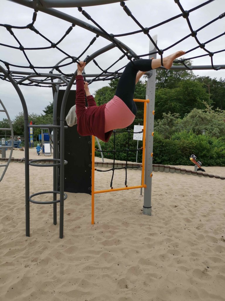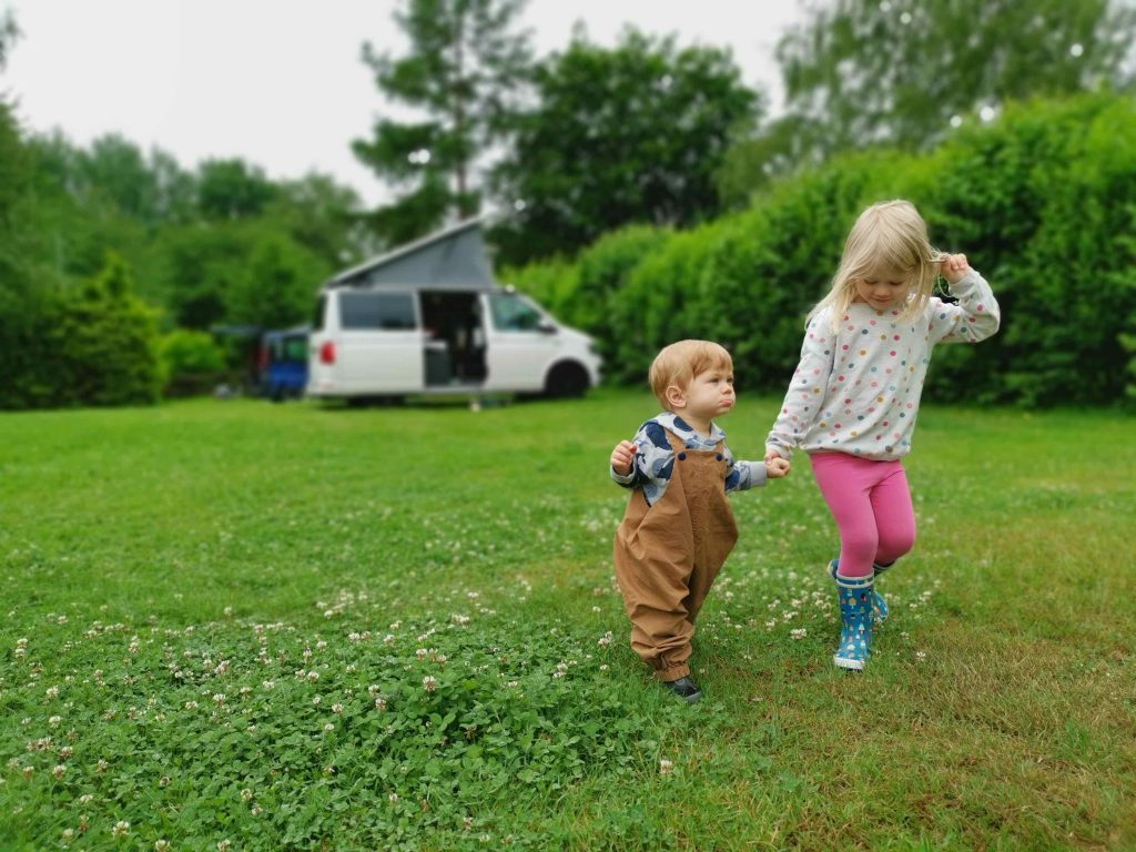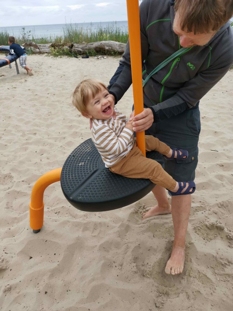 Der Campingplatz Ückeritz „Im Erlengrund“ ist Oval aufgebaut und unser Stellplatz (44) war nah zu den Sanitäranlagen und Spülmöglichkeiten, aber doch mittendrin im Geschehen. Dass unser Stellplatz zur Kinder-Hauptzentrale auserkoren wurde, konnten wir allerdings nicht ahnen. Schon am Abend des zweiten Tages erkundete Marie mit Josh und Papa den kleinen Spielplatz am Rande des Erlengrundes. Unsere kontaktfreudige große Quasselstrippe lernte relativ schnell andere Kinder kennen, freundete sich an und ward nicht mehr gesehen.