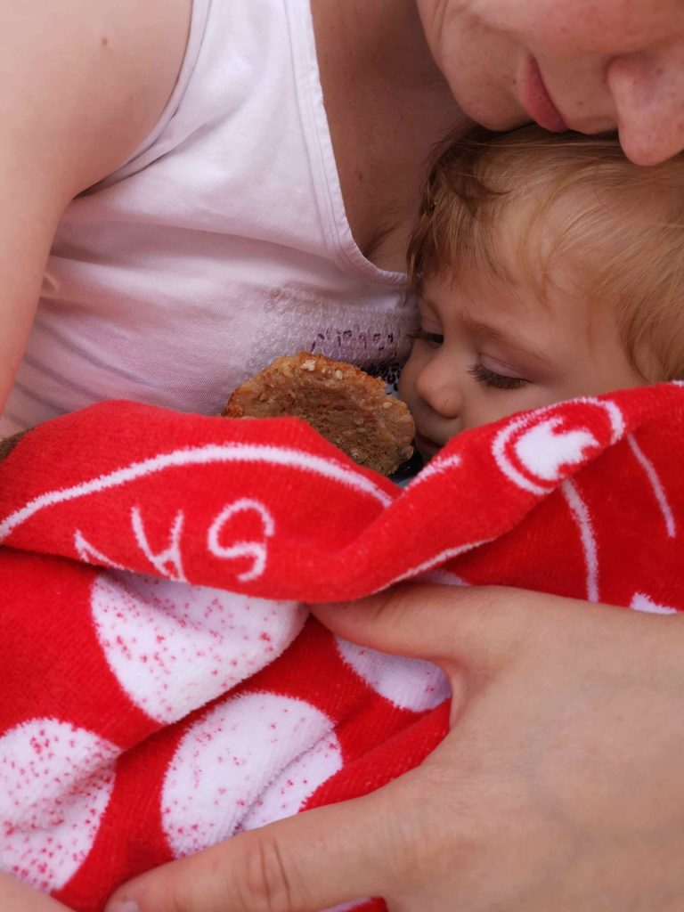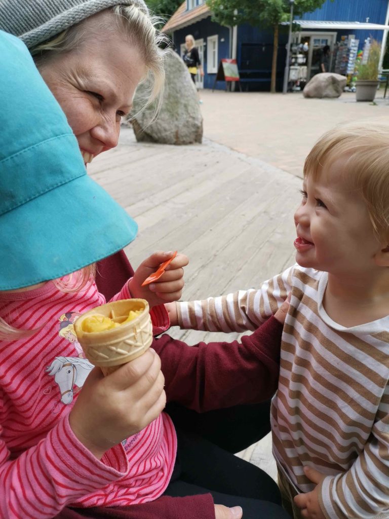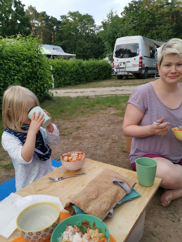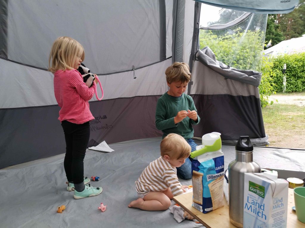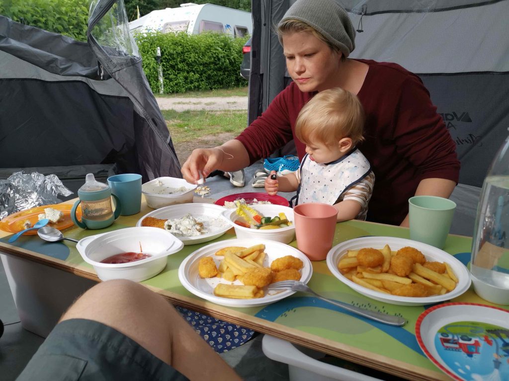 Bruno und Familie haben wir am Strand kennengelernt. Seine kleine Schwester war sehr interessiert an unserem Spielzeug und karrte alles weg. Bruno war begeisterter Taucher und amüsiert über unsere Versuche, Marie ins Wasser zu bewegen… eher erfolglos… Auf dem Campingplatz traf man sich durch Zufall wieder und Bruno fühlte sich bei uns so zuhause, dass er auch ohne Marie gerne TonieBox hörte oder im Vorzelt spielte. Manchmal wartete er schon am Zelt auf uns. Während des Essens entdeckten wir ihn einmal verträumt hinter unserem Zelt liegend und spielen. Nach kurzer Zeit wussten auch seine Eltern wo er zu finden war.