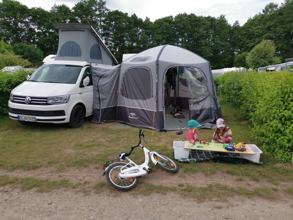 Doch die allabendliche Wiederholung und die günstige Beschaffenheit des Campingplatzes lies schnell die Vorteile klar werden und Gedanken machten sich breit: Wenn Josh irgendwann auch jemanden zum spielen hat, dann hätten wir ja mal Ruhe… cool.