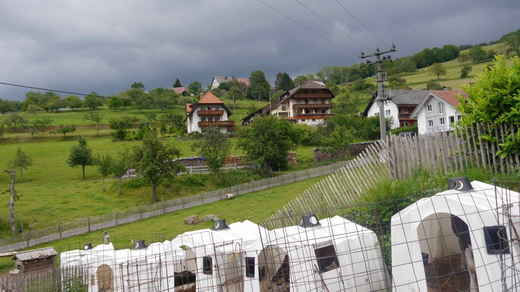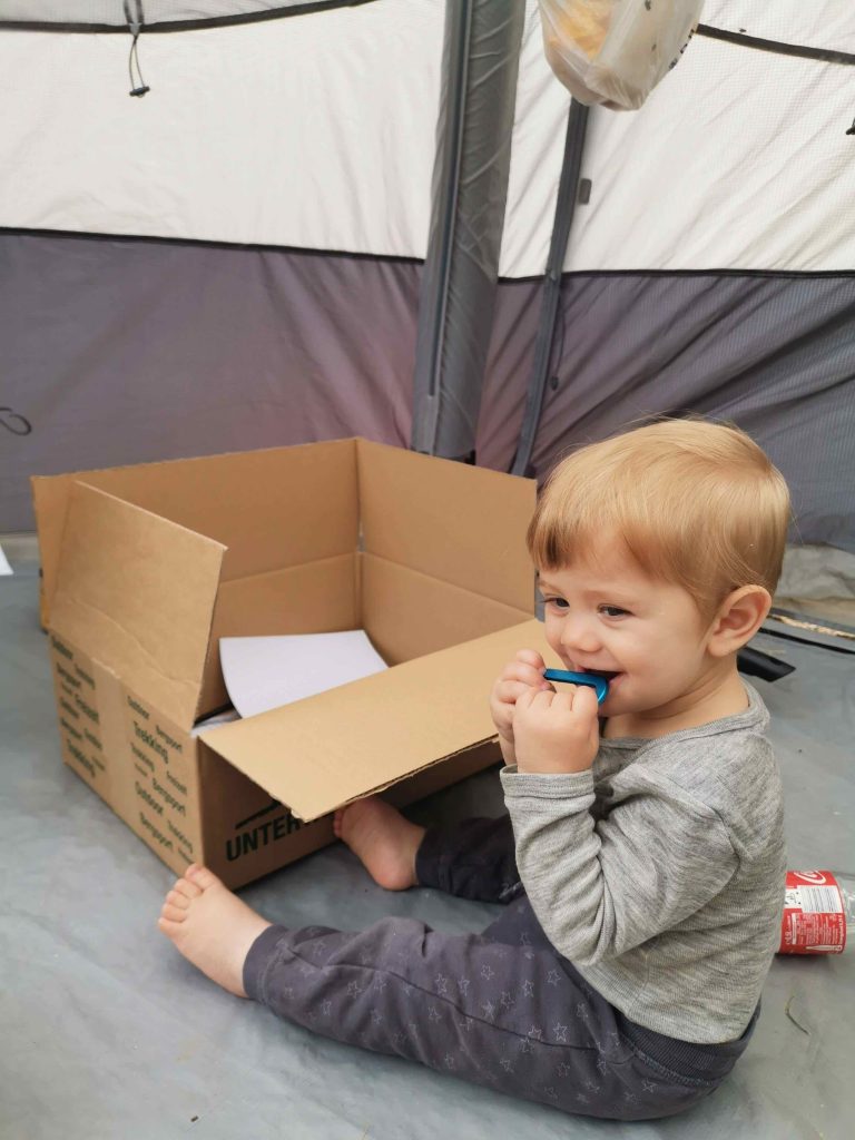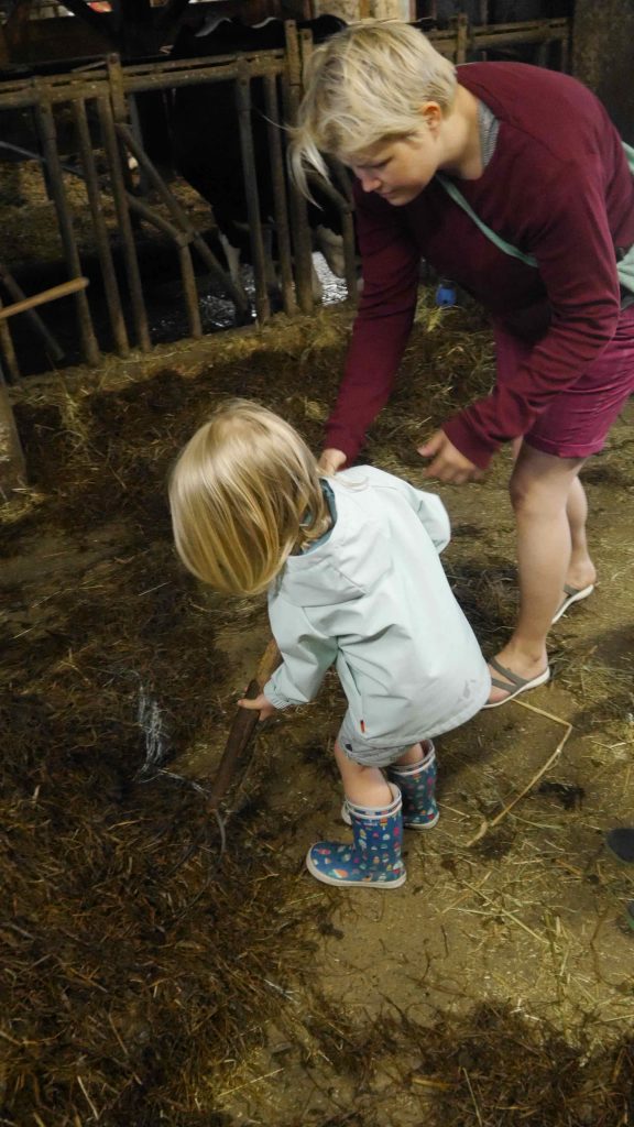 Ansonsten haben wir unser mobiles Heim verbessert, Joshi zum allein Laufen motiviert (erfolglos), und die Stallzeit auf dem Hof genutzt. Marie hat Emil gestreichelt, der gestern geboren wurde.